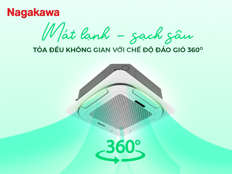 Dàn lạnh âm trần cassette của NM2T-A100R1T39 được trang bị chế độ đảo gió 360 độ, cho phép luồng khí mát lan tỏa đều khắp mọi ngóc ngách. Nhờ đó, căn phòng sẽ được làm mát nhanh chóng và hiệu quả hơn, mang đến sự thoải mái tối đa cho người sử dụng.