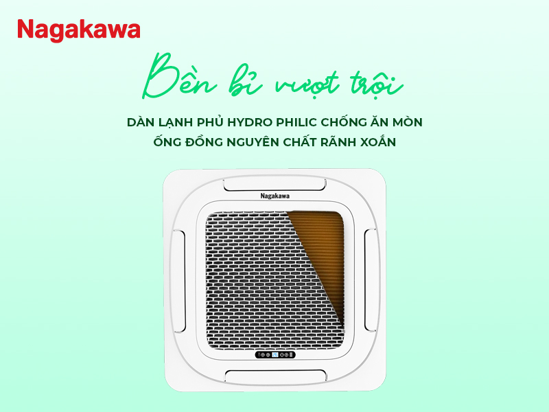 Dàn trao đổi nhiệt của điều hòa thương mại multi 2in1 Nagakawa NM2T-A100R1T39 được phủ lớp Hydrophilic chống ăn mòn, bảo vệ máy bền bỉ trước các tác động khắc nghiệt của môi trường.