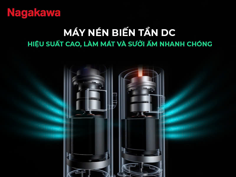Máy nén xoắn ốc kép DC Twin Rotary là công nghệ tiên tiến được trang bị trong dàn nóng của Mini VRF Nagakawa. Máy nén này giúp tối ưu hóa hiệu suất làm lạnh và sưởi ấm, đồng thời tiết kiệm năng lượng đáng kể so với các dòng điều hòa thông thường. Nhờ vào khả năng vận hàng ổn định và hiệu quả của máy nén này, sản phẩm không chỉ giúp tiết kiệm chi phí điện mà còn kéo dài tuổi thọ của hệ thống.