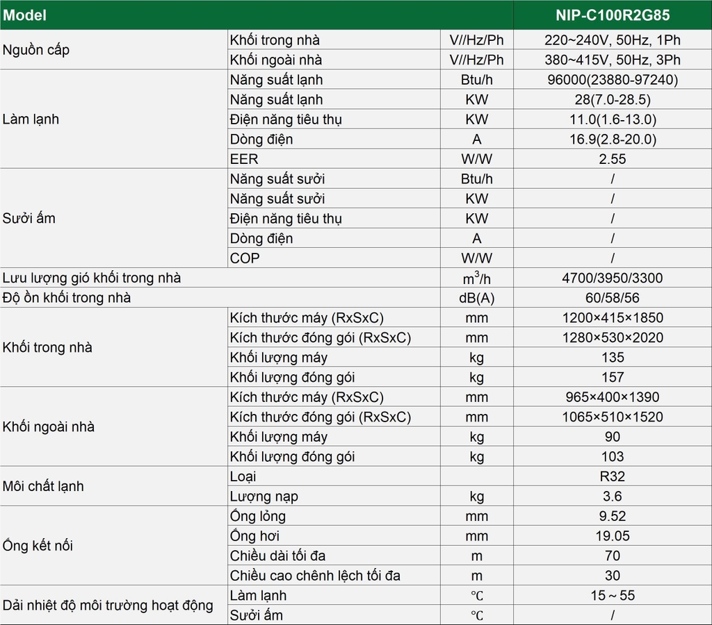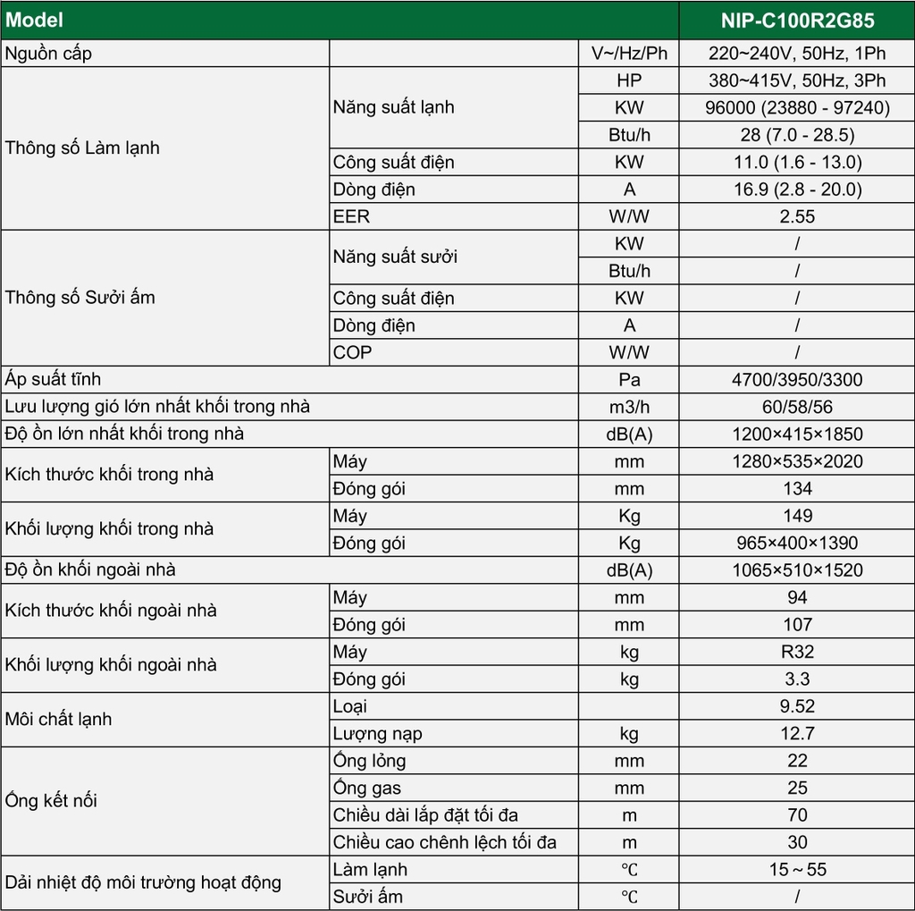 Điều hòa tủ đứng 1 chiều Inverter Nagakawa NIP-C100R2G85