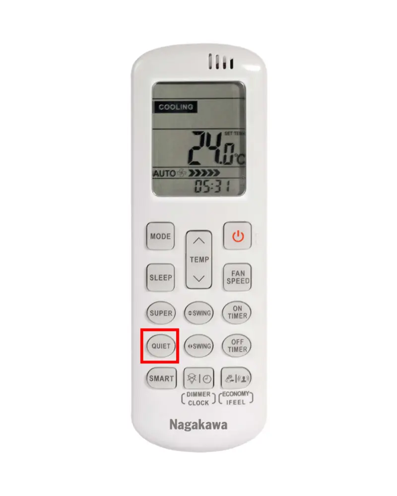 Lựa chọn chế độ Quiet trên điều khiển điều hòa nếu cần không gian yên tĩnh