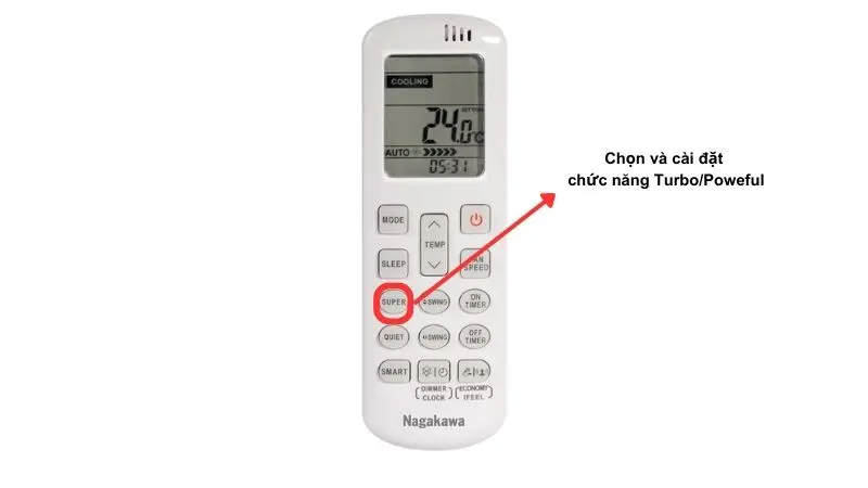 Điều chỉnh tốc độ quạt trên điều khiển điều hòa Nagakawa