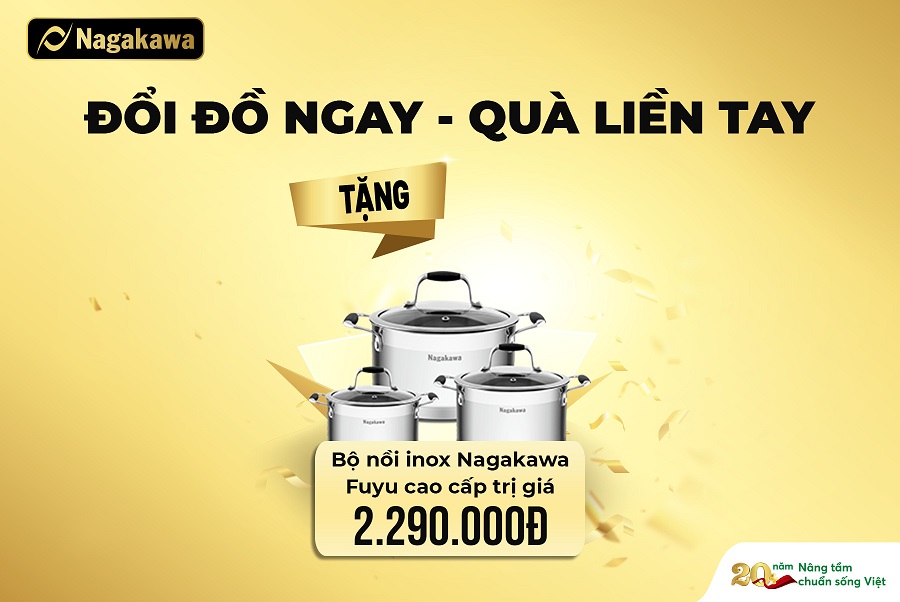 Khách hàng mang thiết bị gia dụng cũ hỏng bất kỳ (bếp gas, bếp hồng ngoại, máy xay, lò vi sóng, nồi, chảo...) đến những điểm kinh doanh thiết bị nhà bếp cao cấp Nagakawa sẽ được thu mua với giá 2.000.000Đ. Giá trị này sẽ được trừ trực tiếp khi đổi mới sang bếp từ Nagakawa và nhận thêm những ưu đãi cực kỳ hấp dẫn.