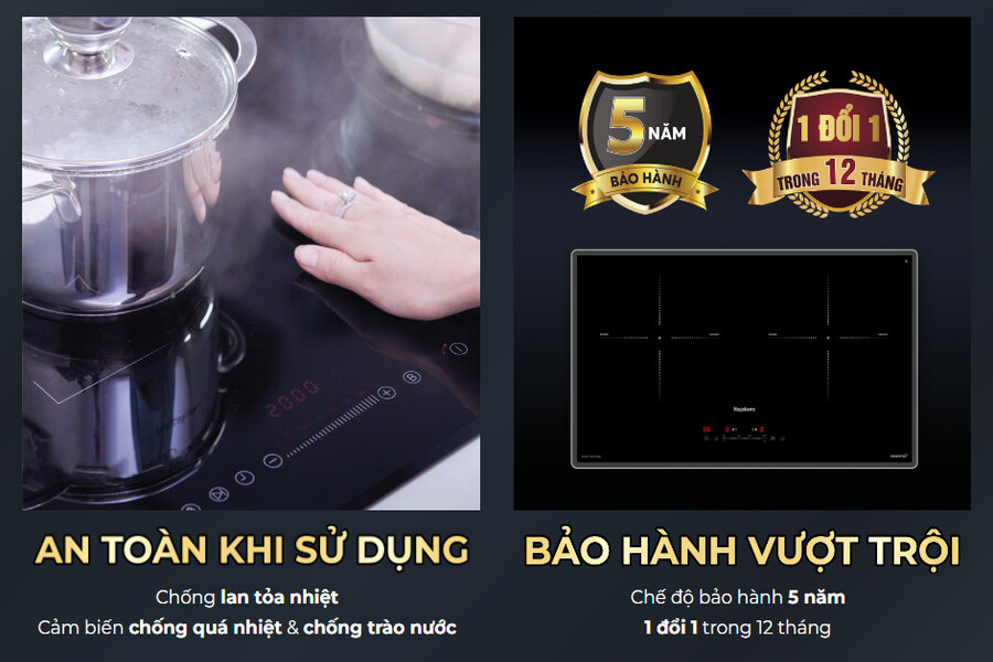 Thay vì những hiểm nguy rình rập khi dùng các thiết bị cũ (bếp gas, bếp hồng ngoại, máy xay, nồi, chảo, …) dễ gây rò rỉ điện, cháy nổ, cồng kềnh tốn diện tích hay vi khuẩn tích tụ lâu ngày gây mất vệ sinh an toàn thực phẩm, hãy đem đổi lấy bếp điện từ Nagakawa để đổi lấy sự an toàn, tiện nghi chưa từng có.