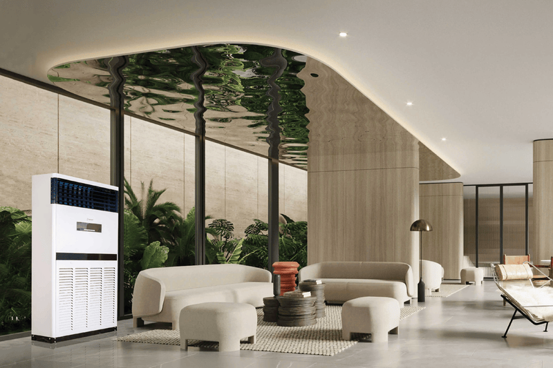 Điều hòa tủ đứng, hay còn gọi là điều hòa cây, là dòng điều hòa thương mại được thiết kế dạng tủ tiện lợi. Với công suất lớn, thiết bị này là lựa chọn lý tưởng cho việc làm mát những không gian rộng lớn như nhà hàng, văn phòng, hoặc các căn hộ gia đình có diện tích phòng khách hoặc phòng sinh hoạt chung rộng rãi.