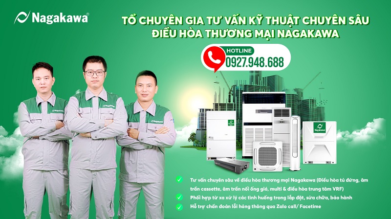Với đặc thù của nhóm sản phẩm điều hòa thương mại chứa hàm lượng kỹ thuật cao và đòi hỏi quá trình lắp đặt phức tạp, Tập đoàn Nagakawa giới thiệu Tổ chuyên gia điều hòa máy lớn tư vấn kỹ thuật chuyên sâu cho nhóm điều hòa thương mại bao gồm: Điều hòa tủ đứng, điều hoà âm trần, điều hoà âm trần nối ống gió, cassette, multi & điều hòa trung tâm VRF.