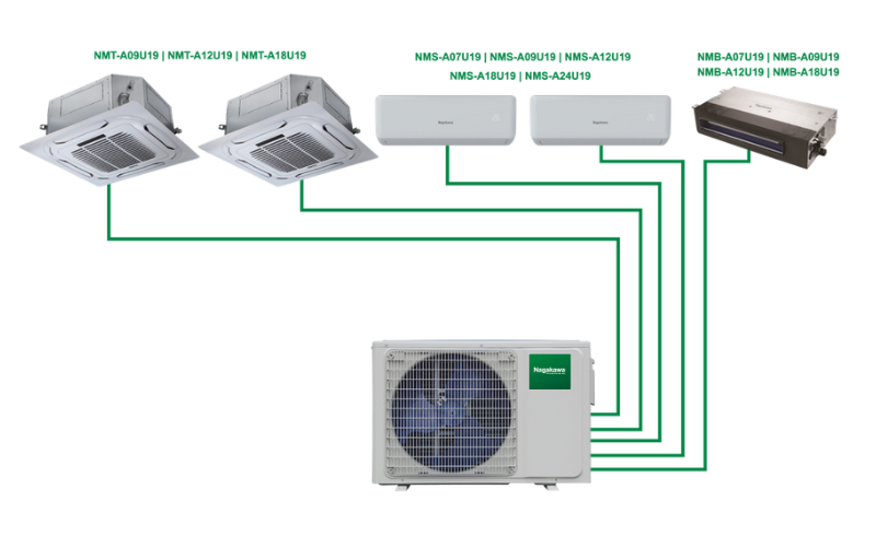 Điều hòa Multi DC Inverter Nagakawa 5 dàn lạnh NMU-A42UB 42000BTU/h 2 chiều