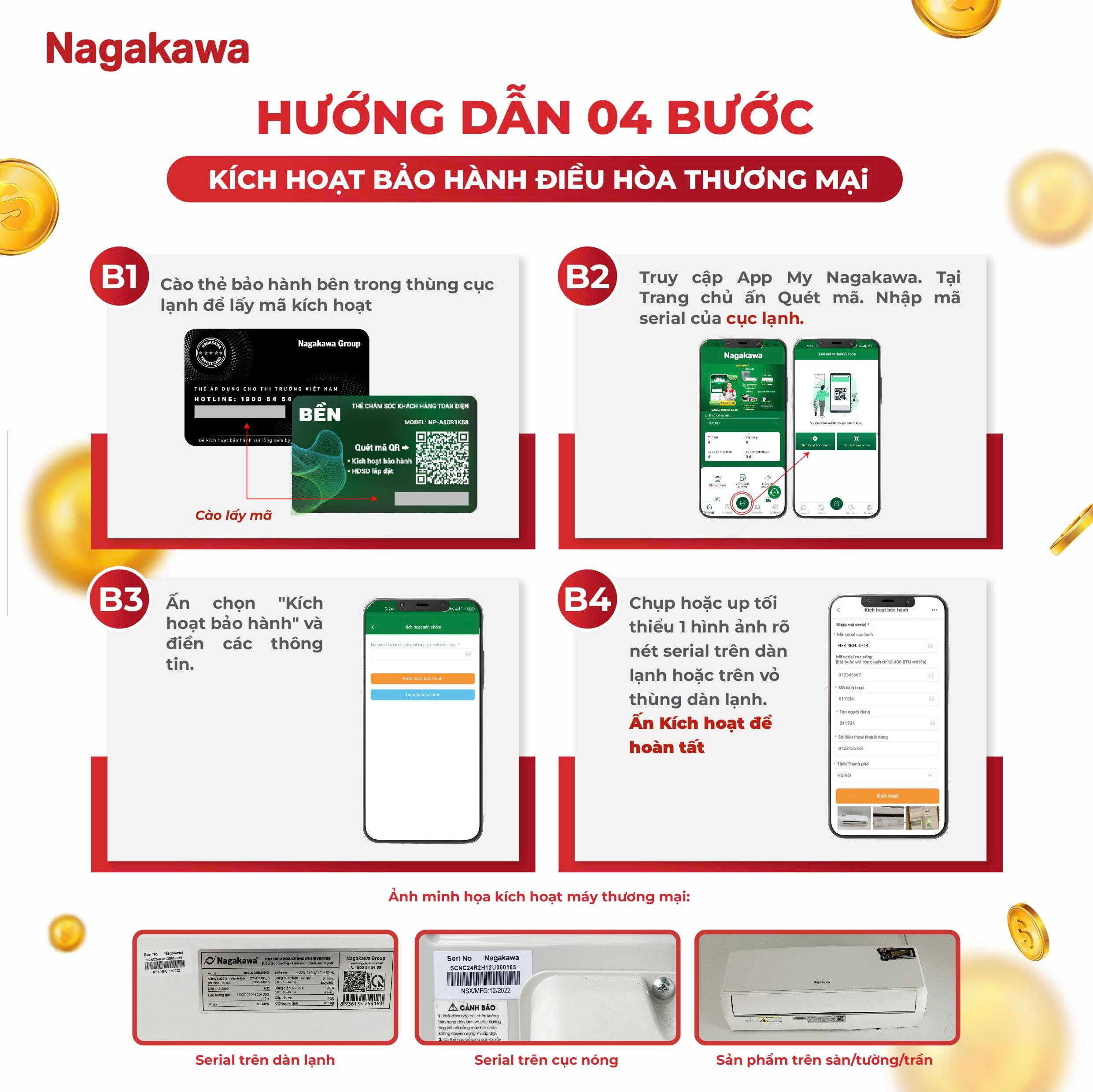 Hướng dẫn 04 bước kích hoạt bảo hành điều hòa thương mại để nhận tiền thưởng kích hoạt: