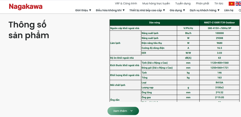 Người dùng có thể truy cập vào trang web của Nagakawa để xem thông tin về thông số sản phẩm