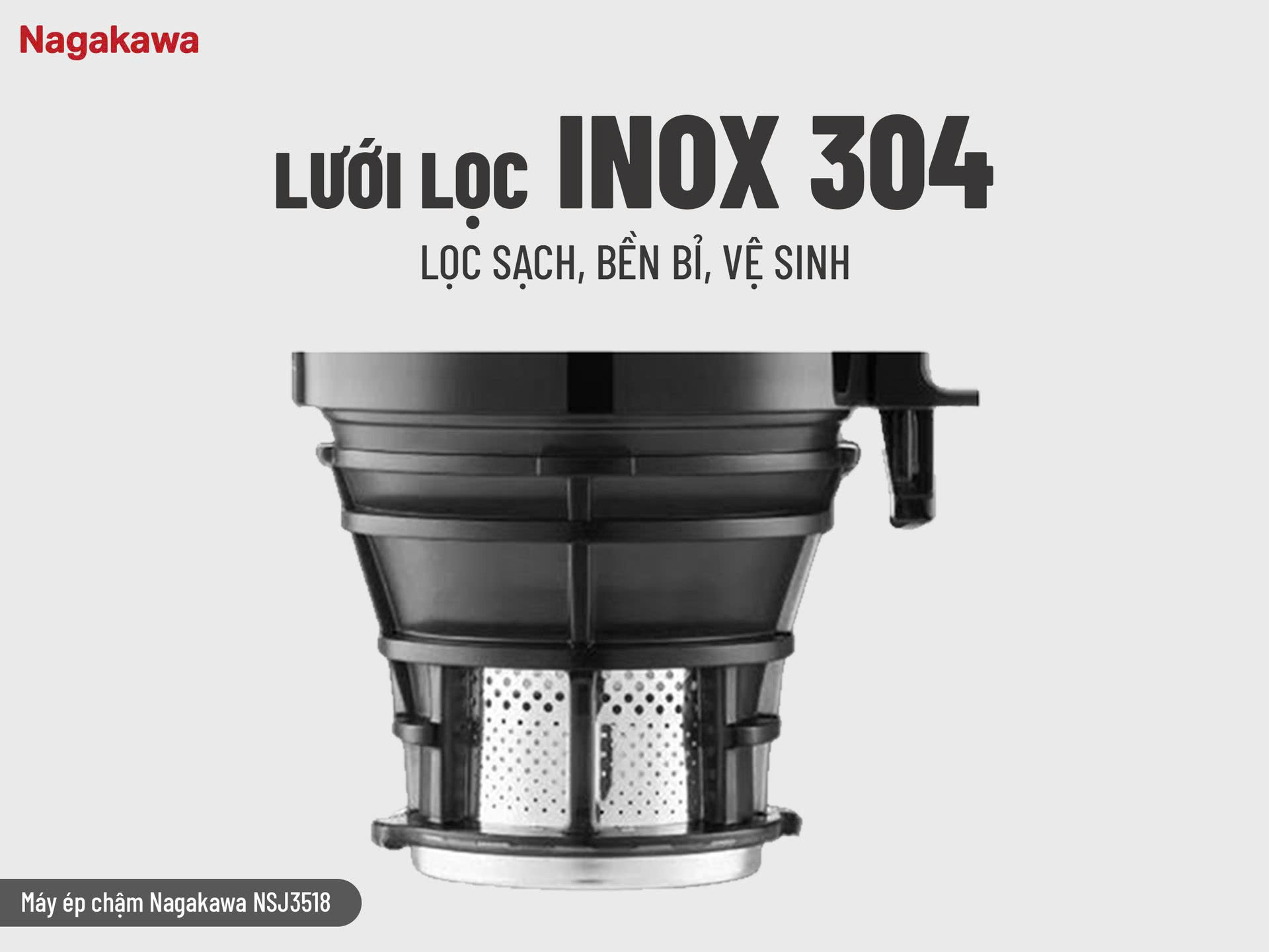 - Bộ lưới lọc inox 304 bền bỉ, mang lại hiệu quả lọc vượt trội
