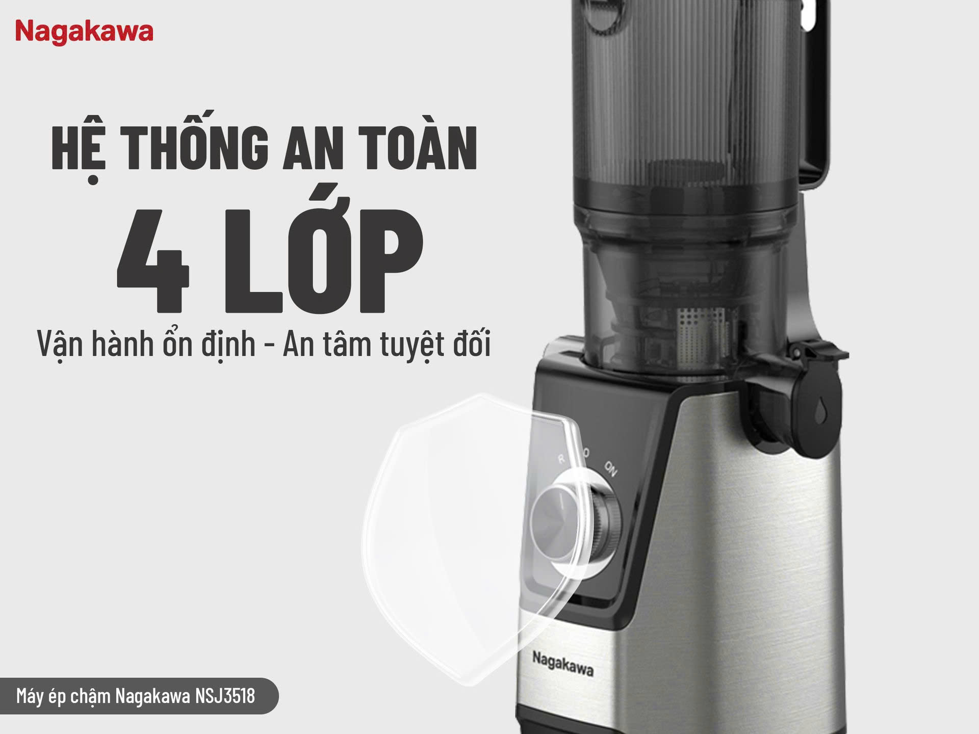 Máy ép chậm Nagakawa NSJ3518 được trang bị bốn tính năng an toàn gồm: