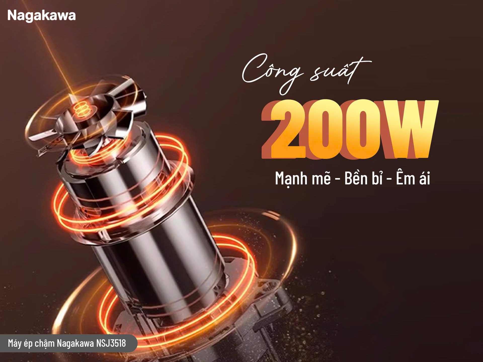 Máy ép chậm Nagakawa NSJ3518 được trang bị công suất 200W, tạo lực ép ổn định để tách nước hiệu quả mà không làm nóng nguyên liệu. Nhờ hệ thống vận hành tối ưu, độ ồn của máy được kiểm soát ở mức 72 dB, đủ êm để sử dụng vào buổi sáng sớm mà không gây ảnh hưởng đến sinh hoạt của gia đình.