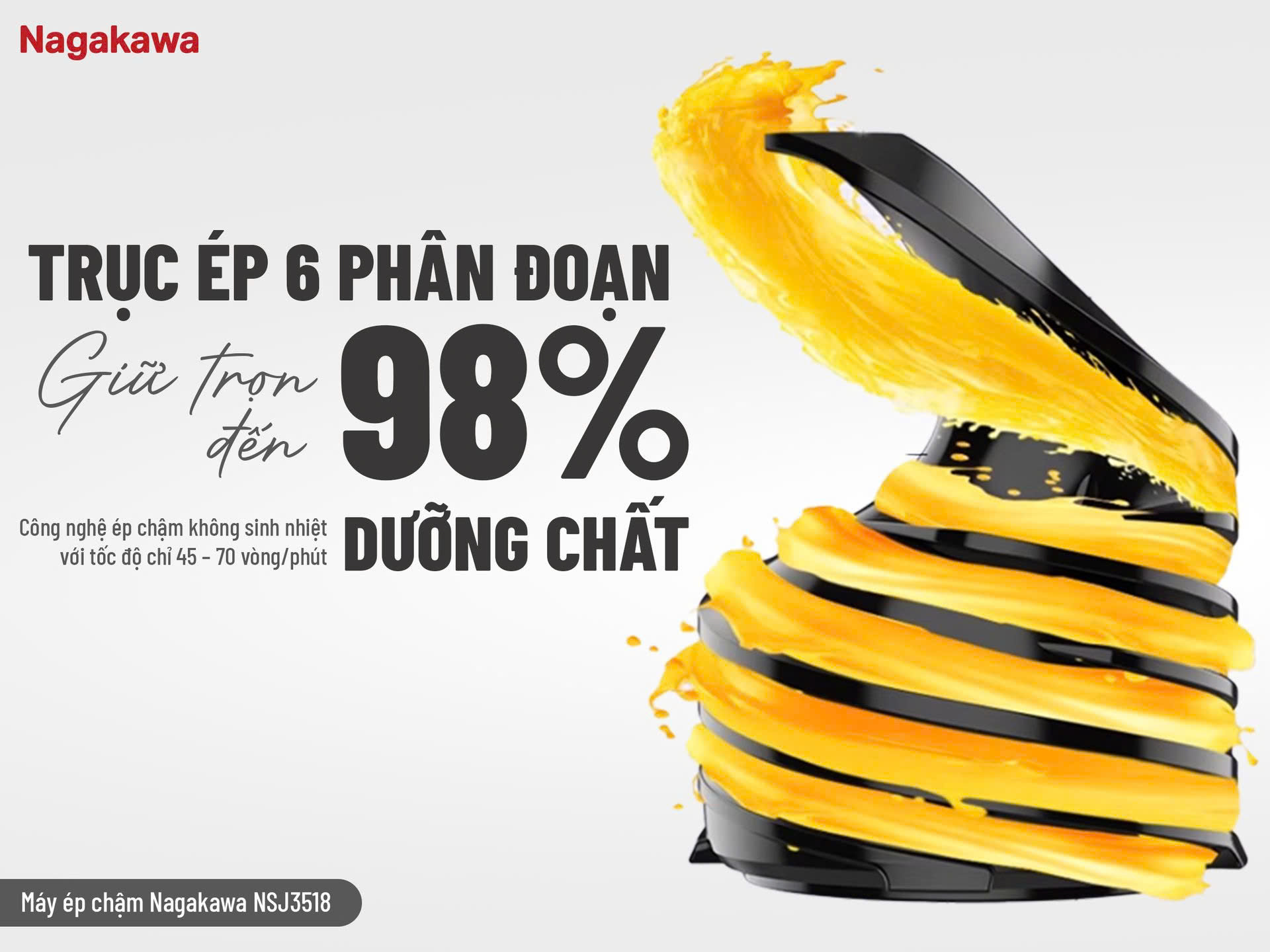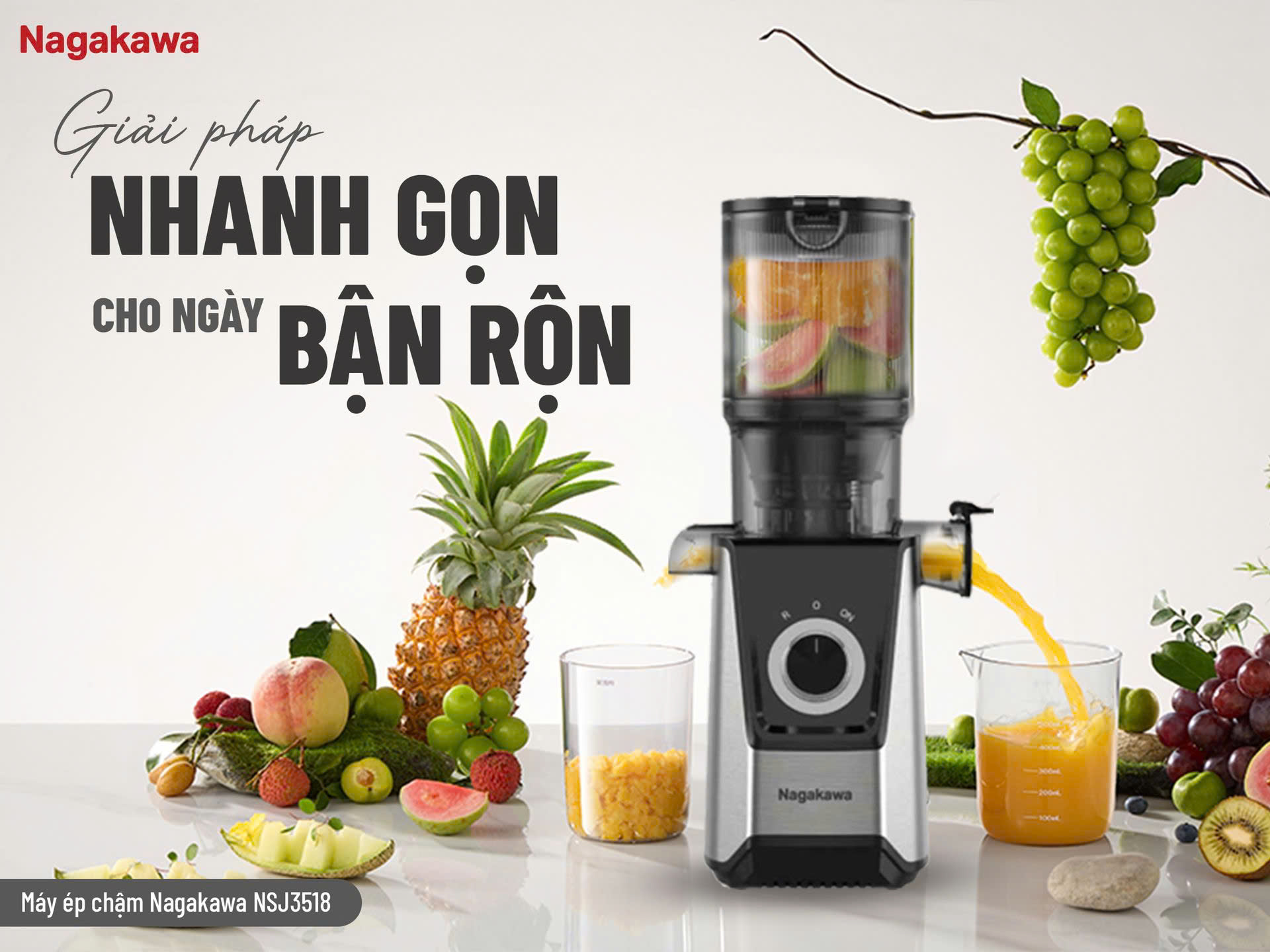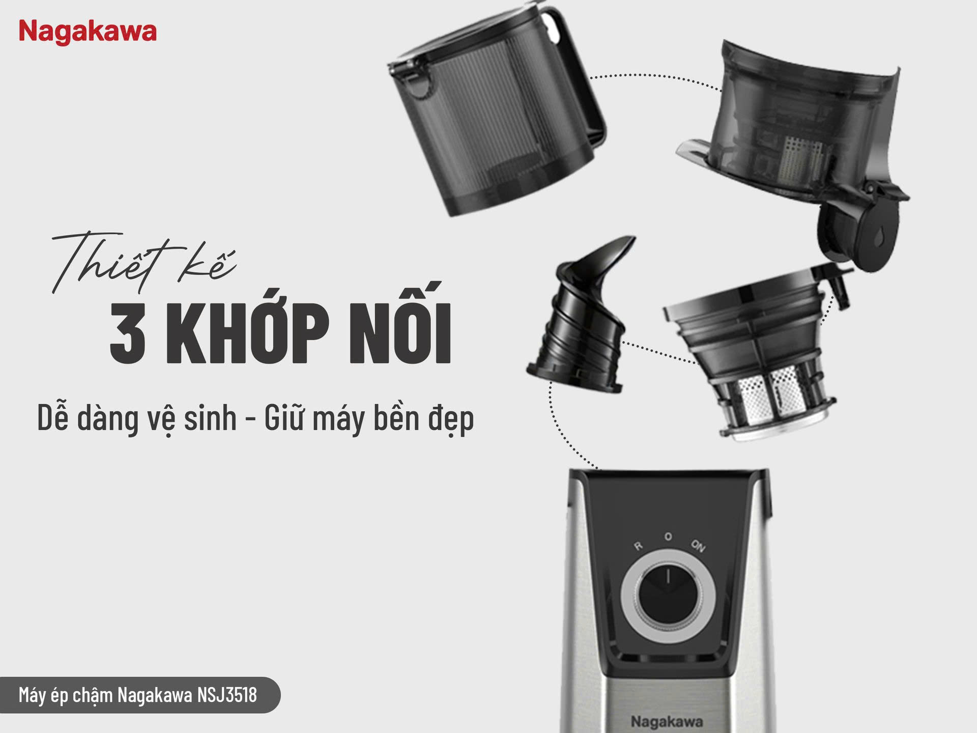 MÁY ÉP CHẬM NAGAKAWA NSJ3518 – GIẢI PHÁP NƯỚC ÉP NHANH GỌN CHO NGÀY BẬN RỘN