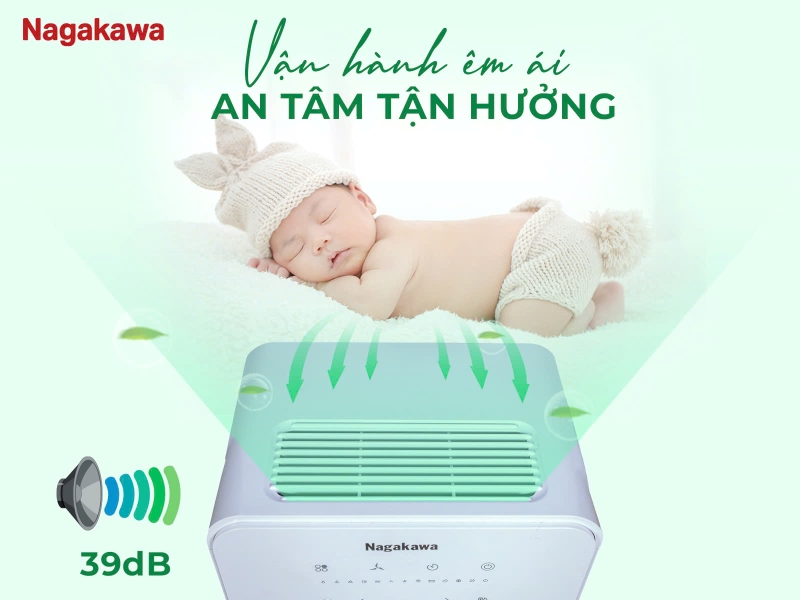 Độ ồn dưới 39dB, tương đương với tiếng nói chuyện thì thầm, giúp máy hút ẩm Nagakawa hoạt động êm ái, không gây ảnh hưởng đến sinh hoạt và giấc ngủ của gia đình bạn.