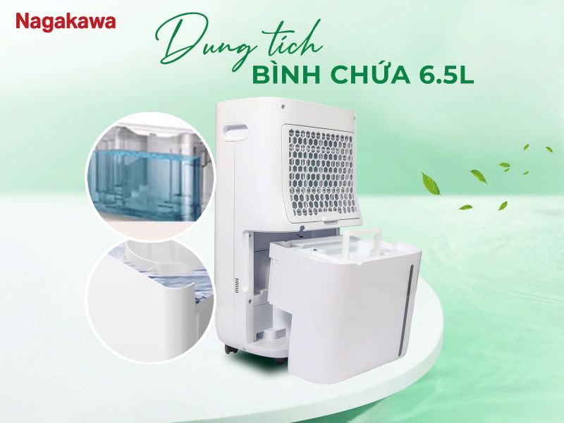 Ngoài tích hợp hệ thống dây xả hút liên tục, sản phẩm còn còn có bình chứa nước dung tích lên đến 6.5 lít, bạn có thể thoải mái sử dụng máy hút ẩm Nagakawa NAD8556 trong thời gian dài và ở bất kỳ vị trí nào trong phòng mà không cần phải đổ nước thường xuyên.