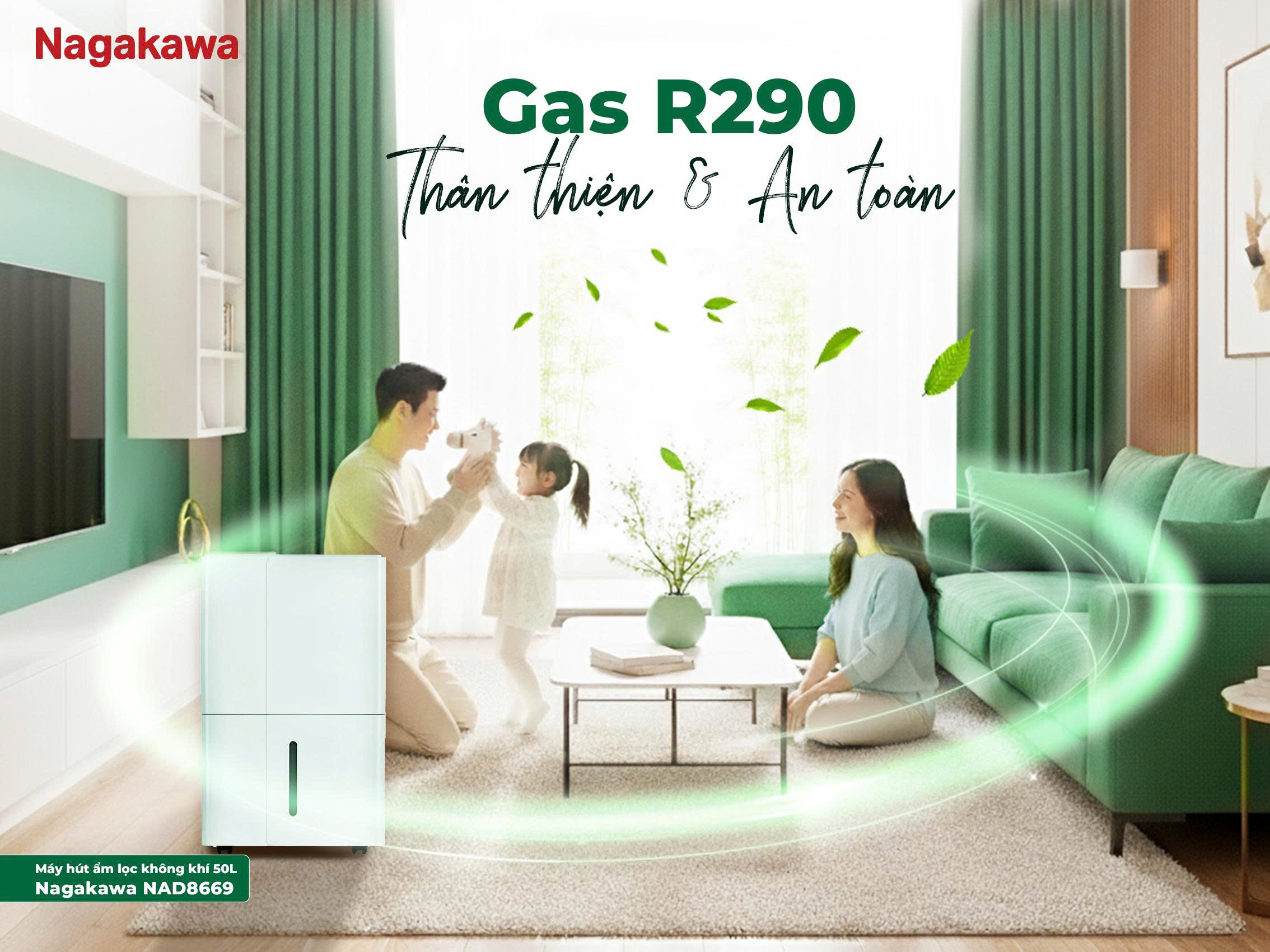 Máy hút ẩm lọc không khí 50L Nagakawa NAD8669 sử dụng môi chất lạnh R290 – loại gas thế hệ mới, thân thiện với môi trường và an toàn cho sức khỏe. Không chỉ giúp máy vận hành bền bỉ, hiệu quả, R290 còn góp phần tiết kiệm điện năng đáng kể, phù hợp với xu hướng sống xanh và tiêu dùng bền vững hiện nay.