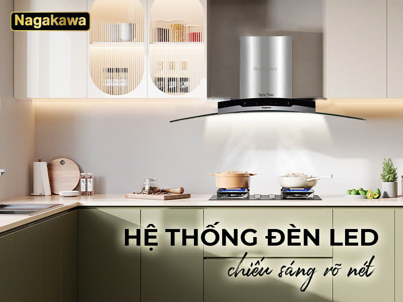 Máy hút mùi cao cấp Nagakawa NKCH09M70 chiếu sáng rõ nét với 02 bóng dàn đều toàn bộ không gian mặt bếp.