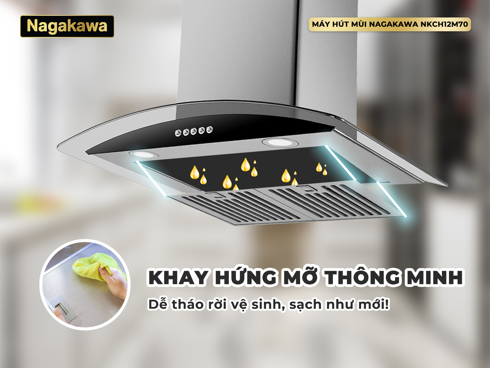 Máy hút mùi Nagakawa NKCH12M70 còn khử mùi siêu hiệu quả với hệ thống lọc than hoạt tính cỡ lớn. Công nghệ lọc tiên tiến này giúp hấp thụ toàn bộ khói bụi, dầu mỡ và mùi thức ăn, trả lại không gian bếp thơm tho, trong lành như mới.