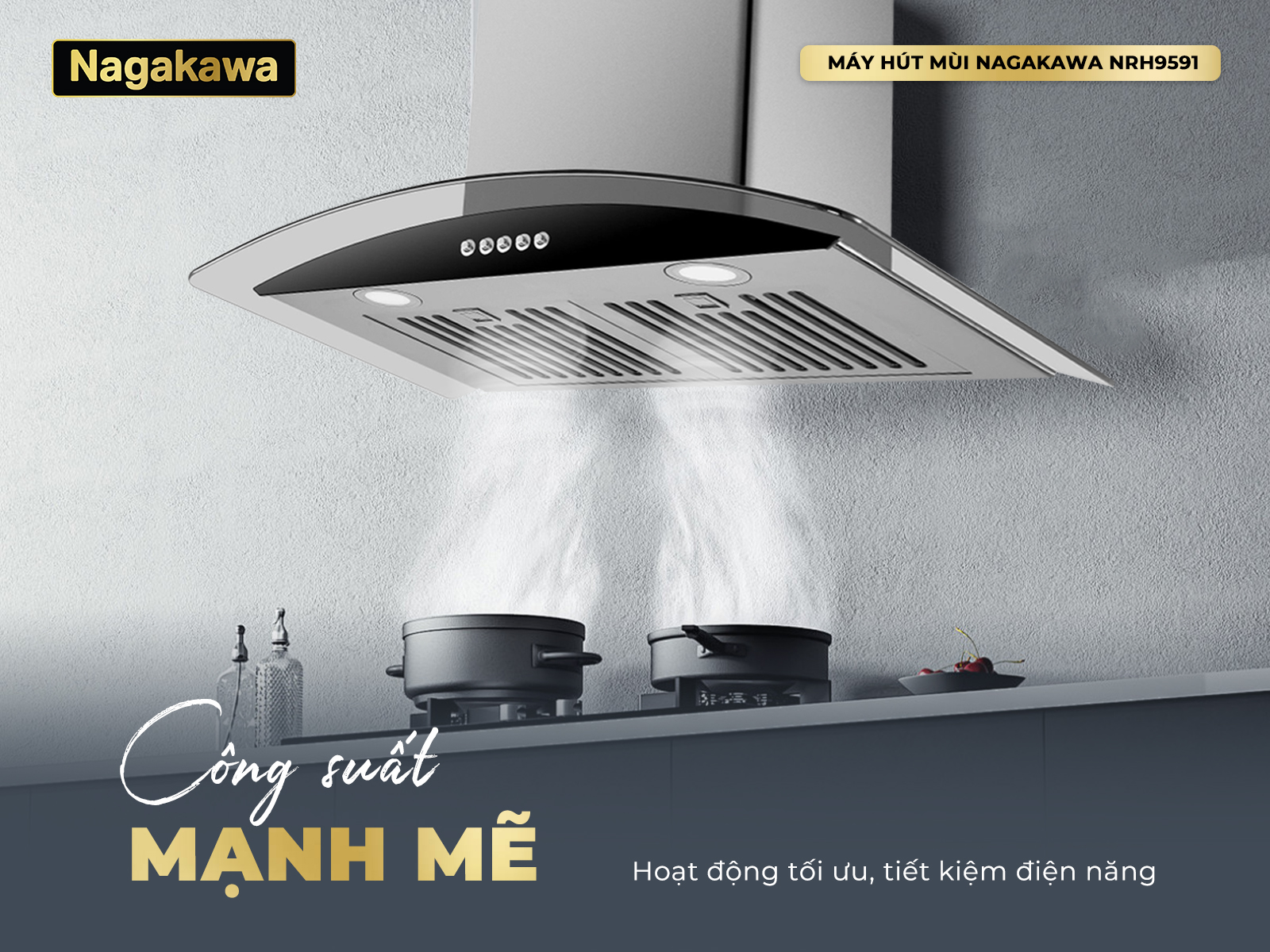 Máy hút mùi Nagakawa NRH9591 mang đến không gian bếp thông thoáng, giúp loại bỏ mùi thức ăn dầu mỡ nhanh chóng giữ cho không khí trong bếp luôn trong lành, sạch sẽ. Với công suất hiệu quả 170W, đảm bảo khả năng hoạt động mạnh mẽ đồng thời vẫn giảm chi phí năng lượng, tiết kiệm điện so với nhiều thiết bị khác. Sở hữu máy hút mùi NRH959, bạn sẽ chẳng còn lo nấu nướng ám mùi thức ăn lên quần áo, đầu tóc đảm bảo căn bếp luôn sạch đẹp, hiện đại và bảo vệ sức khỏe cho cả gia đình.