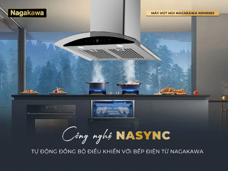 Máy hút mùi Nagakawa NRH9593 tích hợp công nghệ NaSYNC - công nghệ kết nối đồng bộ độc quyền của Nagakawa, giúp tự động cảm biến bật và tắt máy hút mùi rất tiện dụng khi bếp điện từ Nagakawa được bật và tắt sau 1 phút. Để đảm bảo không gian bếp không còn ám mùi thức ăn máy sẽ tự động ngắt chậm lại 1 phút giúp mang lại trải nghiệm vượt trội cho người sử dụng.