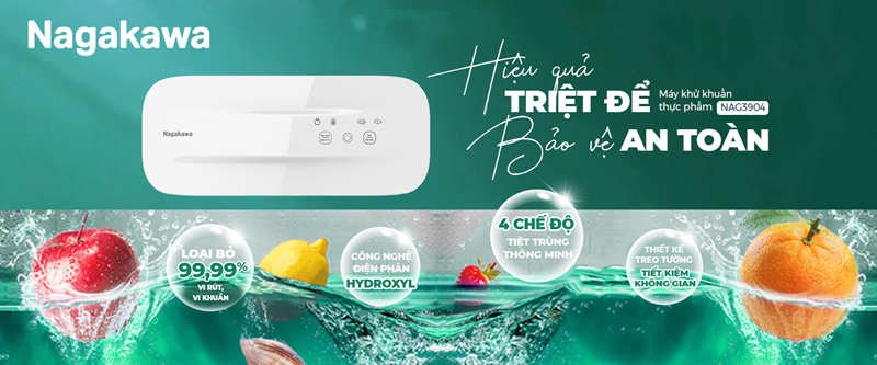 Nổi bật với công nghệ điện phân Hydroxyl hiện đại, Máy khử khuẩn thực phẩm NAG3904 mang đến sự an tâm toàn diện cho người dùng, xóa bỏ nỗi lo "thực phẩm bẩn" đang ngày càng gia tăng.