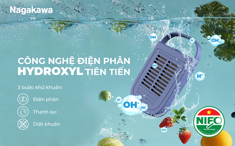 Ưu việt hơn so với các công nghệ khác, sản phẩm máy khử khuẩn Nagakawa NAG3905 có khả năng khử khuẩn triệt để mà vẫn đảm bảo sự an toàn tuyệt đối cho người dùng nhờ công nghệ điện phân Hydroxyl.