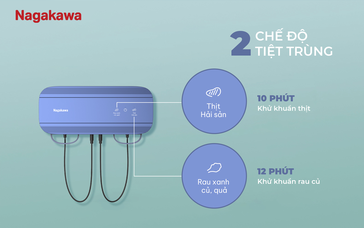 | Chức năng tiệt trùng: | 2 chế độ (Rau xanh, Củ quả - Thịt, Hải sản) |