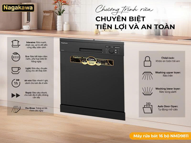 MÁY RỬA BÁT NAGAKAWA NMD9811 – CÔNG NGHỆ ĐỈNH CAO, BÁT ĐĨA SẠCH BONG, AN TÂM SỐNG KHỎE