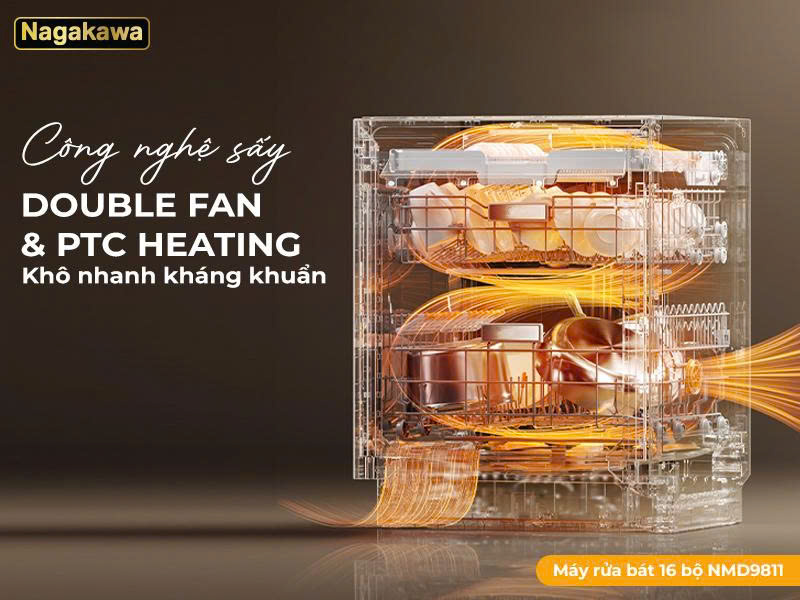 CÔNG NGHỆ SẤY DOUBLE FAN & PTC HEATING – KHÔ NHANH, KHÁNG KHUẨN