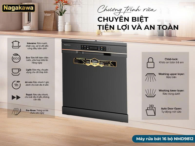 MÁY RỬA BÁT NAGAKAWA NMD9812 – SẠCH SÂU KHÁNG KHUẨN, THẢNH THƠI TẬN HƯỞNG CUỘC SỐNG