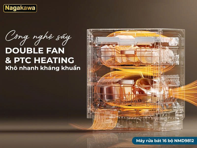 CÔNG NGHỆ SẤY DOUBLE FAN & PTC HEATING – KHÔ NHANH, KHÁNG KHUẨN