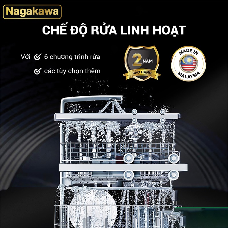 Ngoài ra, Máy rửa bát cao cấp Nagakawa NAG3601M15 còn có tới 6 chương trình rửa tiện ích & 4 tùy chọn thông minh giúp chăm sóc bát đĩa đúng cách trong khi vẫn đảm bảo hiệu quả rửa cực sạch.
