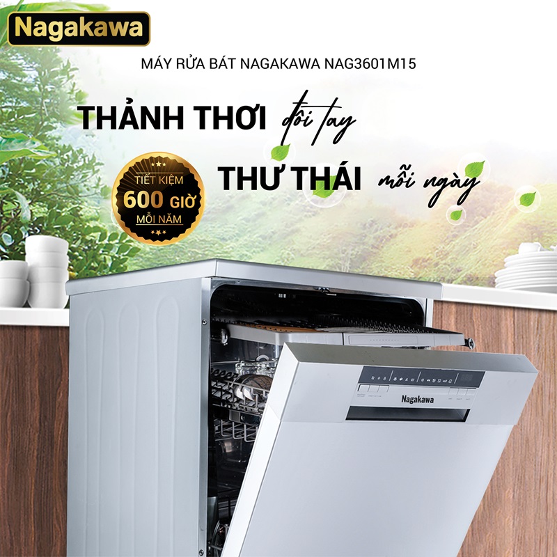 Máy rửa bát Nagakawa NAG3601M15 giúp bạn tiết kiệm rất nhiều thời gian trong công việc dọn dẹp bếp núc hàng ngày. Thay vì phải rửa bát đĩa bằng tay mất thời gian và công sức, máy rửa bát có thể thực hiện công việc này một cách nhanh chóng và hiệu quả. Điều này cho phép bạn có nhiều thời gian hơn để tận hưởng cuộc sống của bạn, thả lỏng, và tập trung vào những điều quan trọng khác. Đây thực sự là một trợ thủ đắc lực cho cuộc sống hàng ngày.