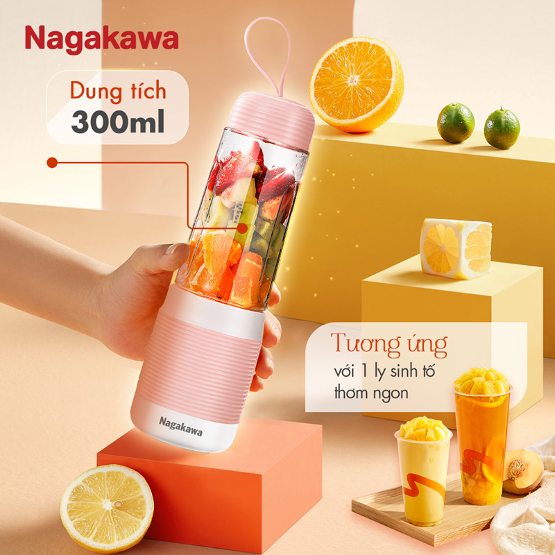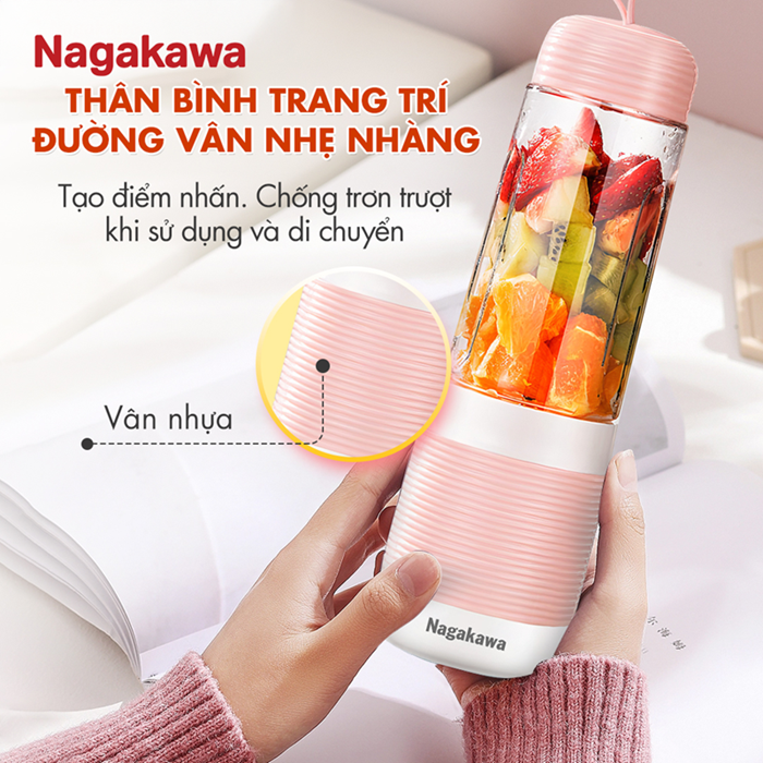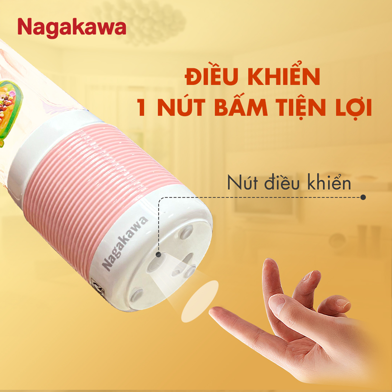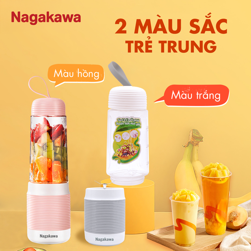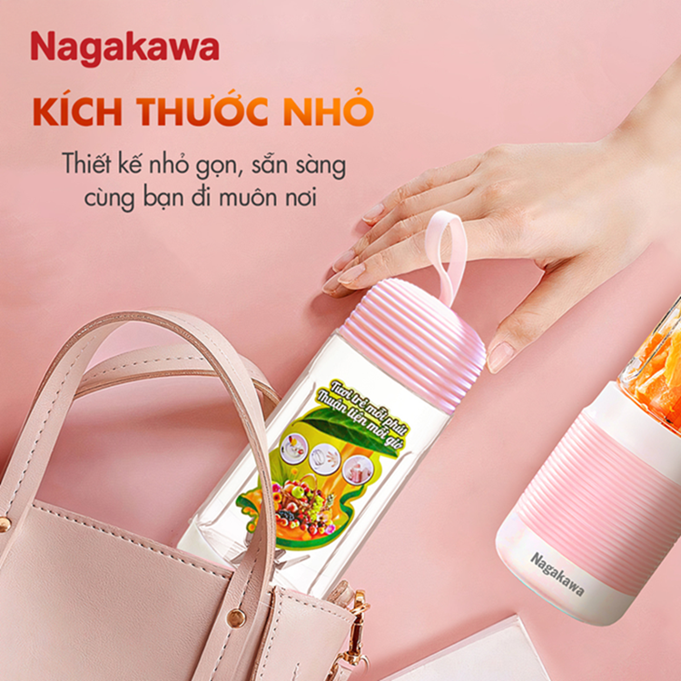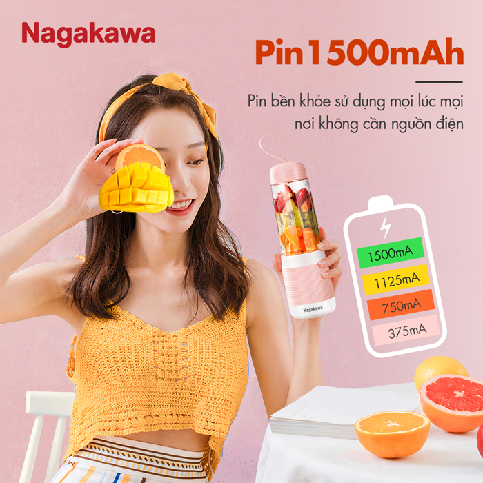 Máy xay sinh tố cầm tay Nagakawa NAG0826 có thiết kế nhỏ xinh và màu sắc bắt mắt. Khối lượng chỉ 0,48kg giúp bạn thoải mái mang theo, dù là đi học, đến nơi làm việc, đi chơi hay đi du lịch, phục vụ nhu cầu mọi lúc mọi nơi, bổ sung dinh dưỡng kịp thời cho cơ thể, hữu ích cho các gia đình có trẻ nhỏ, người bệnh, người ăn kiêng, ... Đặc biệt, máy sử dụng Pin 1500mA không cần dùng điện, bền khỏe, phục vụ cả ngày dài khi mất điện hoặc những nơi không có điện.