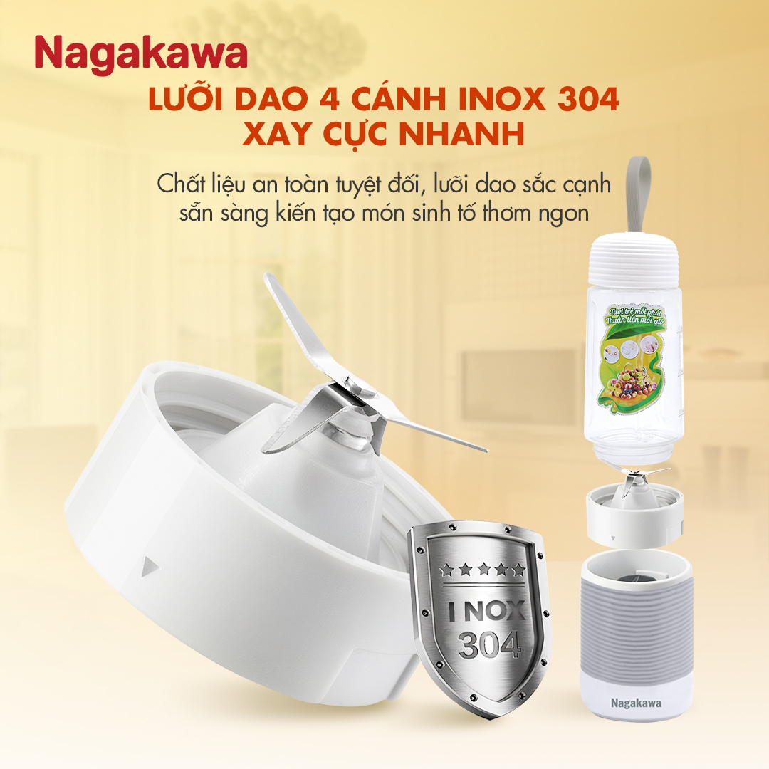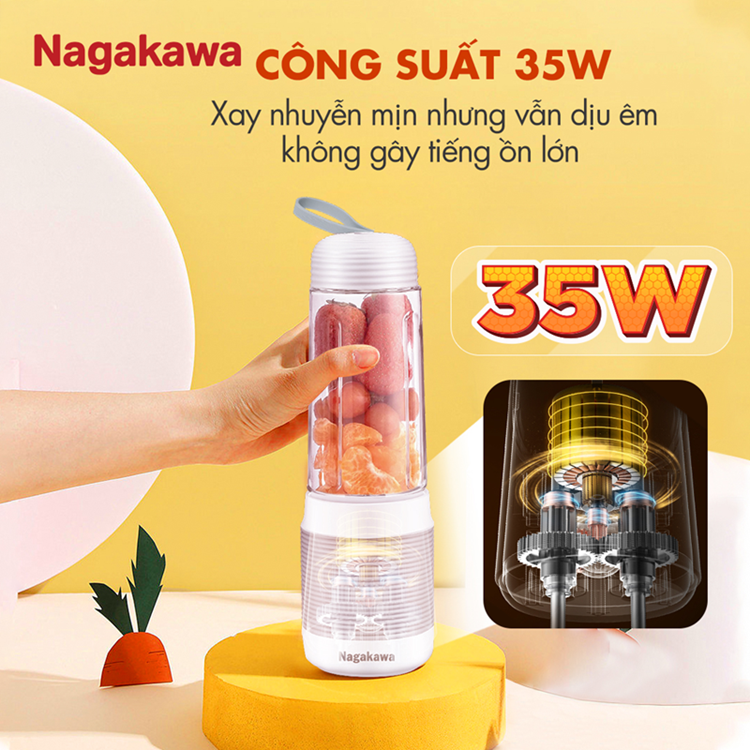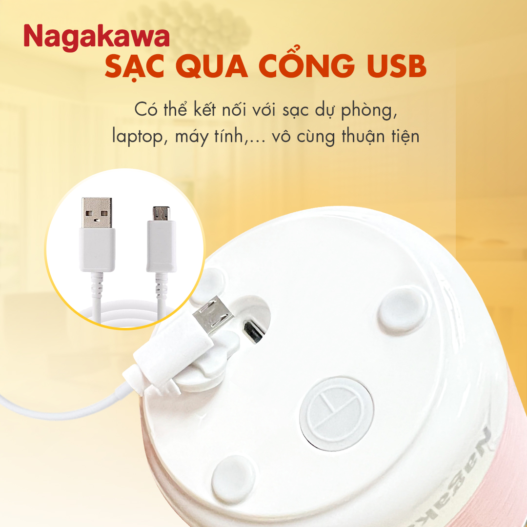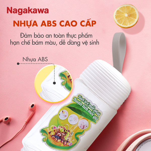 Máy xay sinh tố cầm tay Nagakawa NAG0826 có thiết kế nhỏ xinh và màu sắc bắt mắt. Khối lượng chỉ 0,48kg giúp bạn thoải mái mang theo, dù là đi học, đến nơi làm việc, đi chơi hay đi du lịch, phục vụ nhu cầu mọi lúc mọi nơi, bổ sung dinh dưỡng kịp thời cho cơ thể, hữu ích cho các gia đình có trẻ nhỏ, người bệnh, người ăn kiêng, ... Đặc biệt, máy sử dụng Pin 1500mA không cần dùng điện, bền khỏe, phục vụ cả ngày dài khi mất điện hoặc những nơi không có điện.