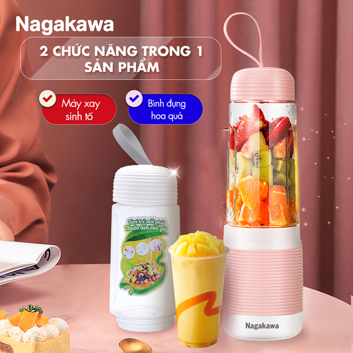 Chiếc máy xay sinh tố cầm tay NAG0826 nhỏ xinh này có thể đảm nhiệm 2 chức năng. Ngoài chức năng xay sinh tố, sản phẩm còn đóng vai trò là bình đựng dung tích là 300ml - quá lý tưởng để mang theo bên mình ở văn phòng, picnic, du lịch mà không nặng nề và tốn nhiều diện tích.