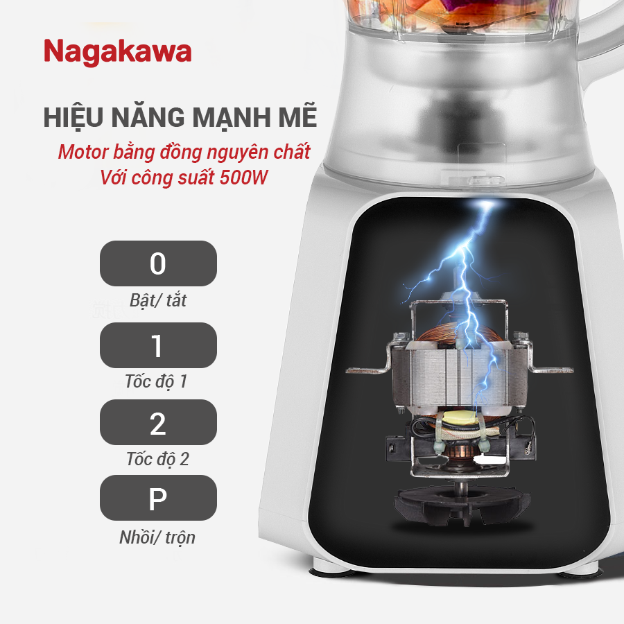 Nếu bạn cần một chiếc máy xay thật khỏe, thay nhuyễn được các loại hạt cứng hay cả đá thì máy xay sinh tố NAG0819 là sự lựa chọn hoàn hảo. Sản phẩm có động cơ bằng đồng nguyên chất hoạt động mạnh mẽ, siêu khỏe, siêu bền bỉ với thời gian. Công suất 500W giúp bạn chế biến các loại sinh tố có đá.
