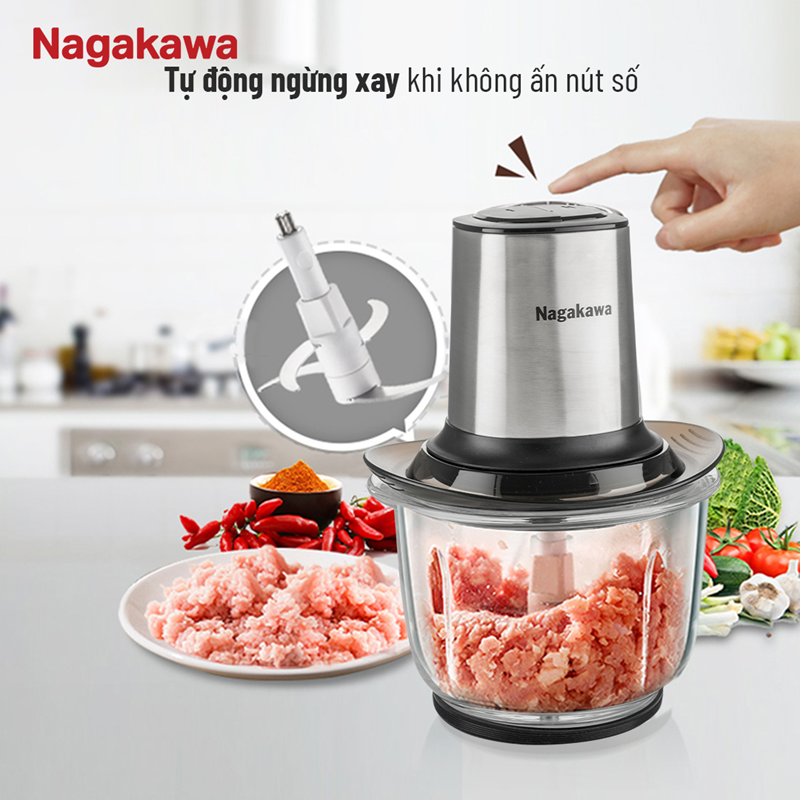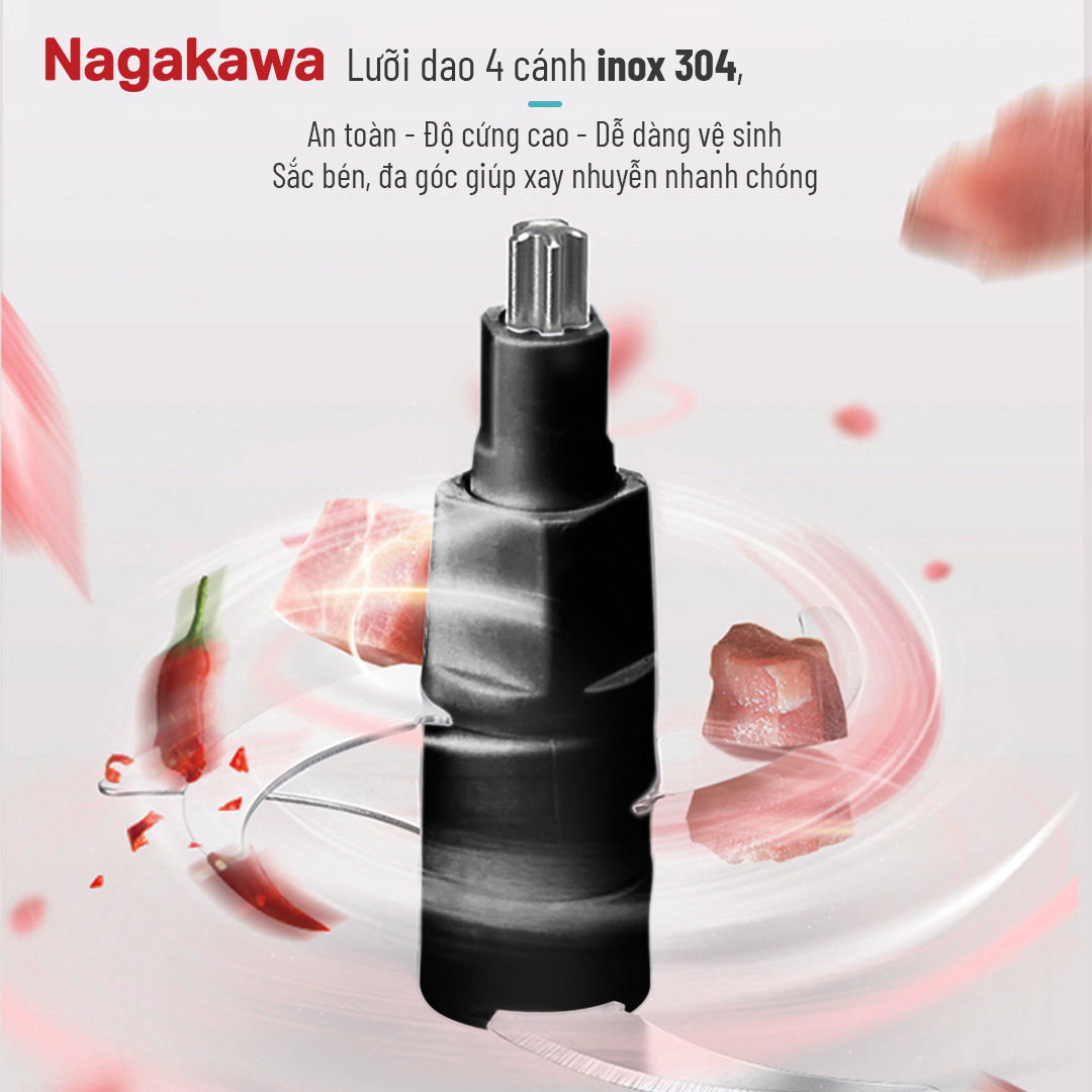 Máy xay thịt Nagakawa NAG0812 có cối được làm từ chất liệu thuỷ tinh Borosilicate cao cấp an toàn sức khỏe, với độ bền cao, giúp cho người dùng có thể dễ dàng quan sát tình trạng của các loại nguyên liệu bên trong.