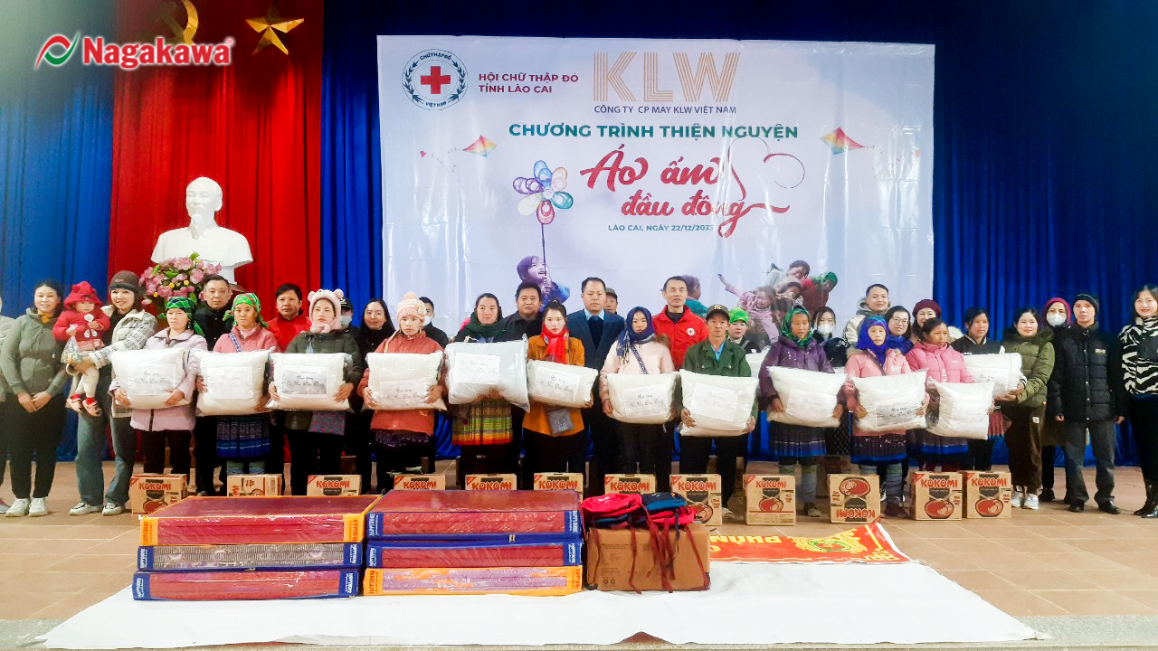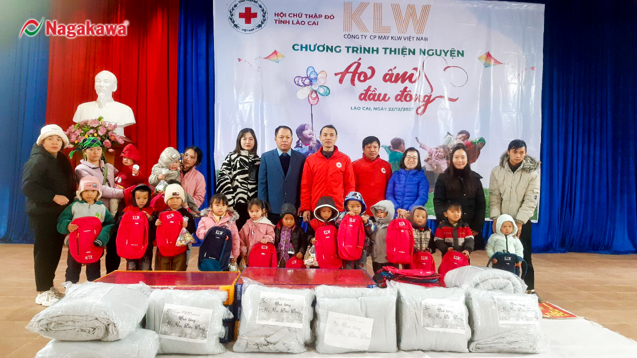 Với mong muốn những cảnh đời khó khăn sẽ được sưởi ấm bằng những món quà tuy nhỏ nhưng tràn đầy tình yêu thương, tràn đầy hơi ấm tình người, Tập đoàn Nagakawa - Công ty CP May KLW Việt Nam, đơn vị trực thuộc Tập đoàn Nagakawa đã tổ chức chương trình từ thiện “Áo ấm đầu đông” nhằm trao tặng chăn bông, áo ấm, các vật phẩm thiết yếu giúp đỡ cho các đồng bào. Trong quá trình triển khai chương trình, các cán bô công nhân viên Tập đoàn Nagakawa nói chung và Công ty CP May KLW Việt Nam nói riêng đã chung tay tham gia chương trình quyên góp, hỗ trợ, đóng góp về tinh thần và vật chất cho các chương trình từ thiện.