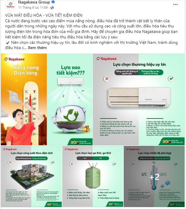 Sử dụng năng lượng tiết kiệm, hiệu quả là giải pháp hàng đầu được kỳ vọng sẽ đóng góp quan trọng cho mục tiêu Net Zero của Việt Nam đến năm 2050. Là doanh nghiệp đầu ngành về điều hòa không khí, Tập đoàn Nagakawa đã và đang áp dụng nhiều giải pháp, trong đó ưu tiên hàng đầu là tuyên truyền thay đổi thói quen sử dụng điện của người dân, khuyến khích lựa chọn các sản phẩm điều hòa uy tín, sử dụng Gas R32 thân thiện với môi trường.