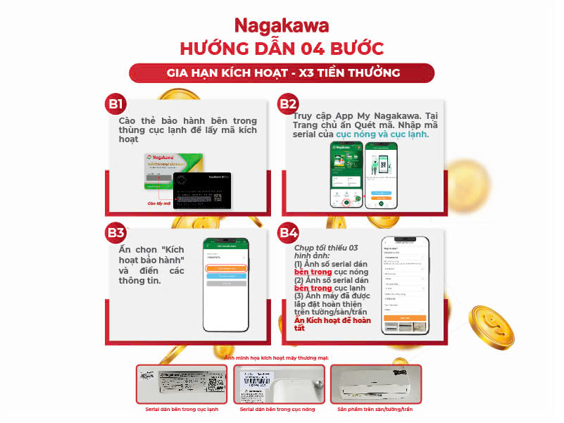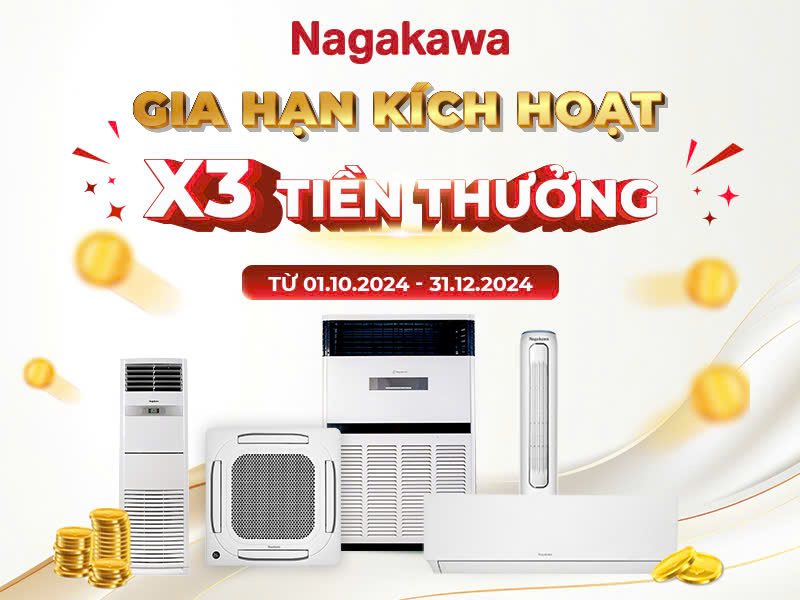 Nối tiếp thành công của các chương trình khuyến mại trước đó, Nagakawa tiếp tục triển khai chương trình "Gia hạn kích hoạt - X3 tiền thưởng" với quy mô lớn và giá trị giải thưởng hấp dẫn. Chương trình được áp dụng từ ngày 01/10/2024 đến hết ngày 31/12/2024, dành cho tất cả các sản phẩm điều hòa Nagakawa có công suất từ 18.000 BTU/h trở lên.