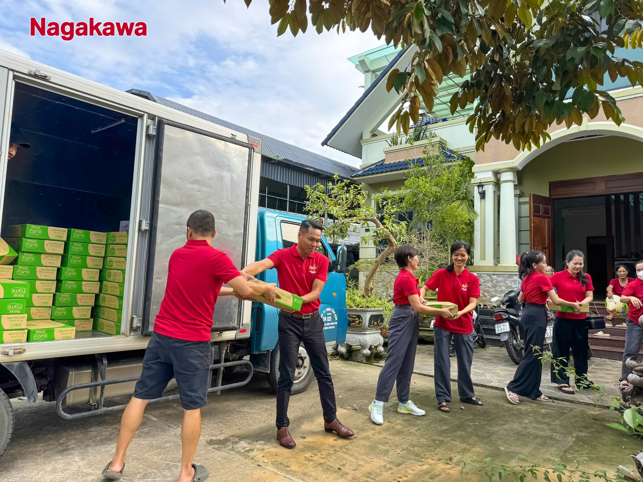 Với tinh thần trách nhiệm, Tập đoàn Nagakawa đã đồng hành cùng Hội Doanh nhân trẻ Vĩnh Phúc thực hiện chương trình thiện nguyện, sẻ chia khó khăn với bà con vùng lũ. Những phần quà thiết thực từ gạo, nước uống đến các nhu yếu phẩm đã được trao tận tay người dân tại các huyện Lập Thạch, Sông Lô, Vĩnh Tường - một trong những nơi chịu thiệt hại nặng nề tại Vĩnh Phúc. Tại đây, nhu yếu phẩm đã được trao tận tay những hộ gia đình đang trong tình trạng khó khăn.