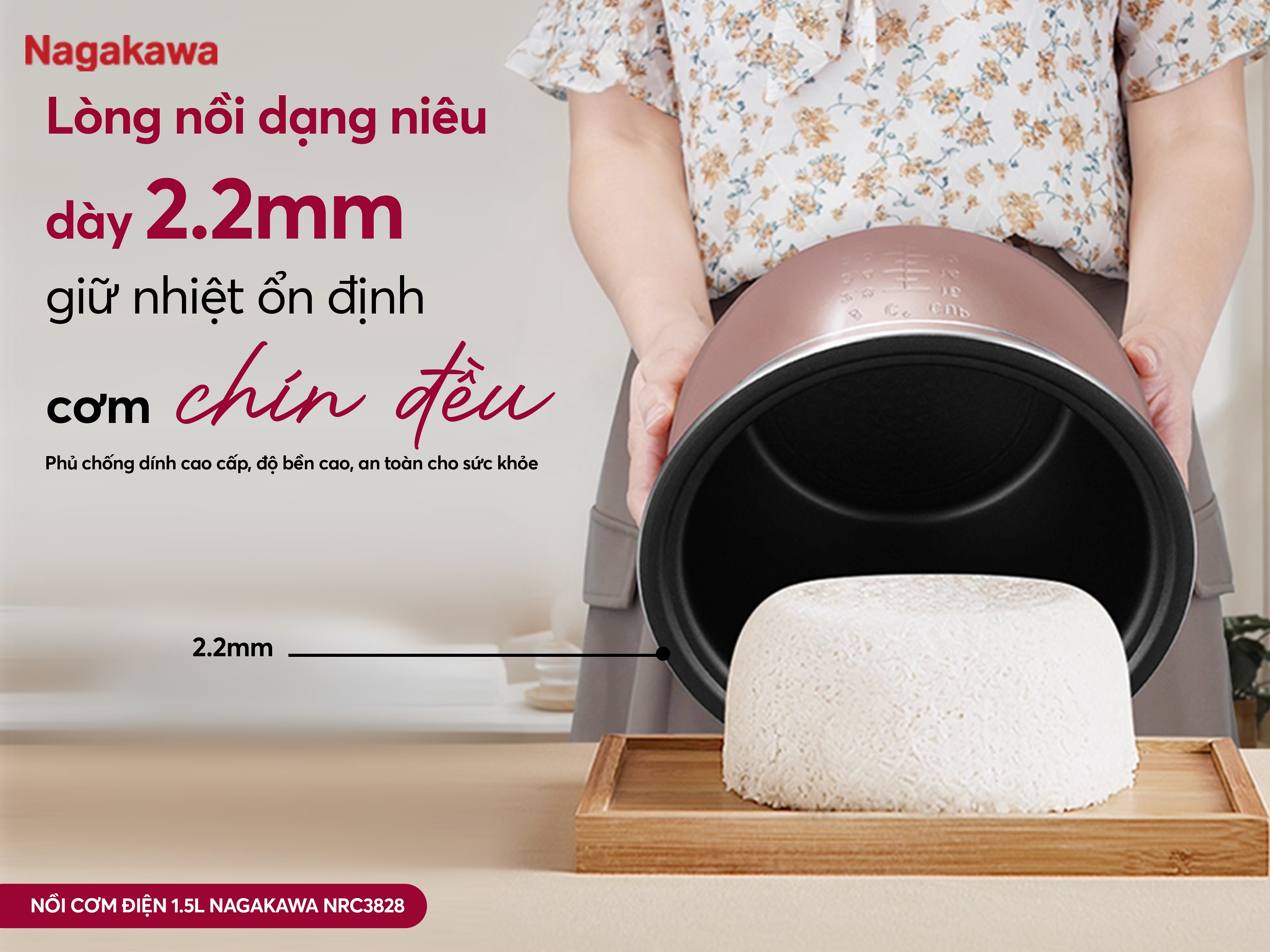 Nồi cơm điện 1.5L Nagakawa NRC3828 - Cơm ngon trọn vị, tiện lợi cho gia đình Việt