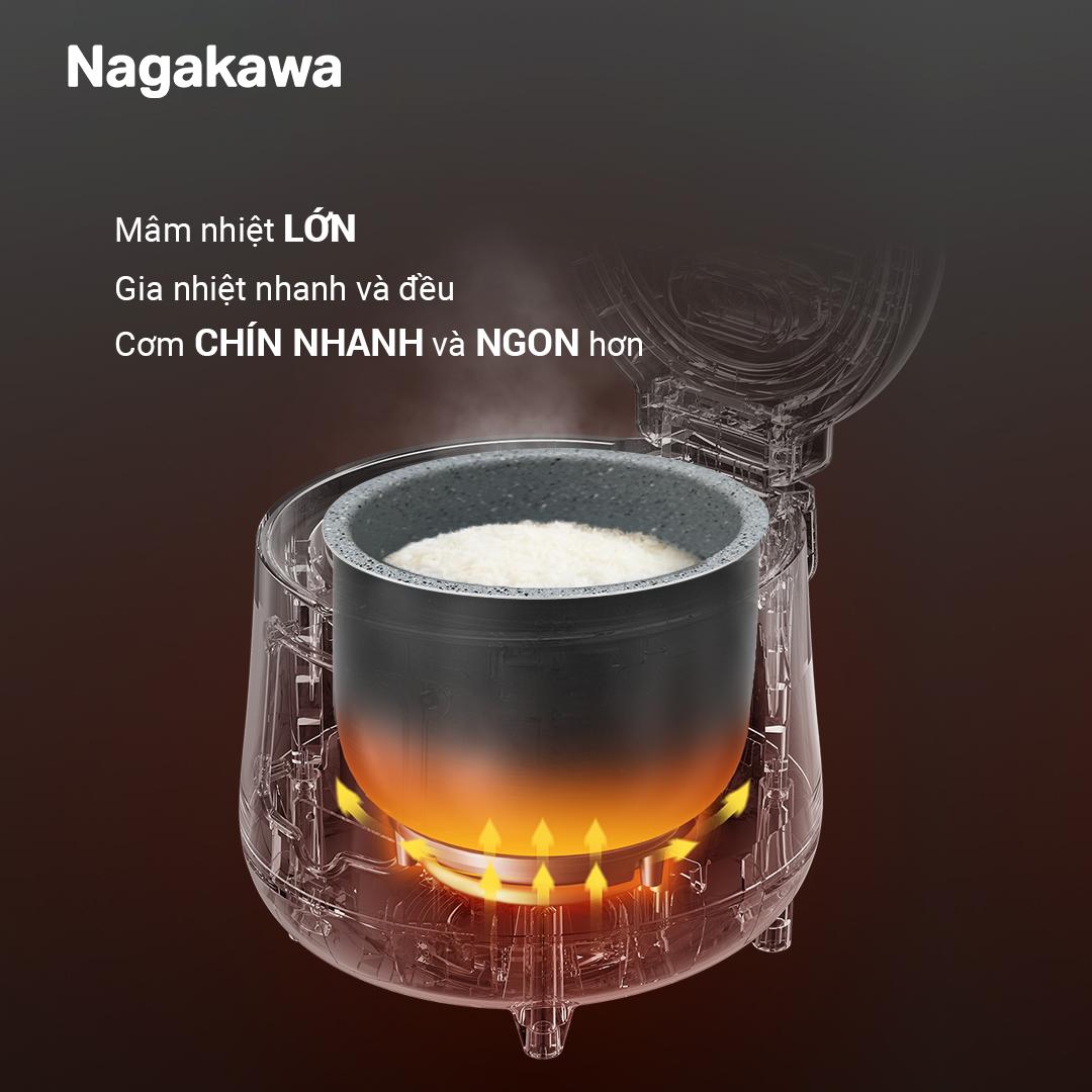 Mâm nhiệt lớn gia nhiệt tốt hơn, được thiết kế đặc biệt dạng cong ôm trọn lòng nồi, tăng khả năng truyền nhiệt giúp cơm chín nhanh, dẻo và thơm hơn.