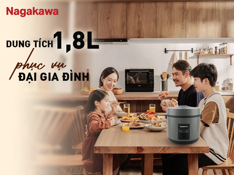 - Dung tích 1.8 lít phù hợp gia đình có 4 - 6 thành viên.