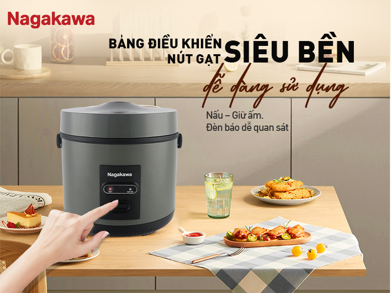 - Bảng điều khiển nút gạt dễ sử dụng, 2 chế độ nấu – giữ ấm kèm đèn báo tiện quan sát