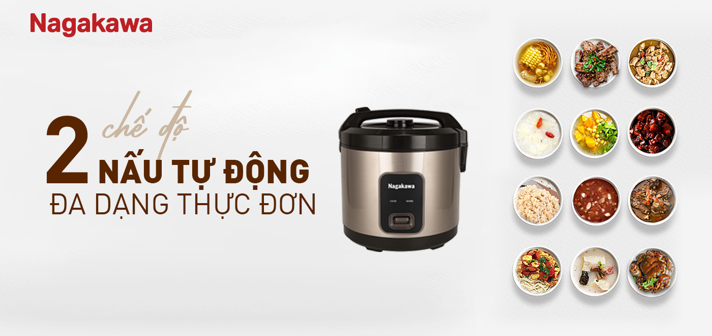 Nồi cơm điện Nagakawa NAG0146 sử dụng bảng điều khiển cơ với 2 chế độ chính là "Nấu - Cook" và "Hâm nóng - Wafm" để đa dạng hóa thực đơn. Bạn có thể nấu cơm, nấu canh, nấu đồ xôi, ủ ấm và điều chỉnh các chức năng này bằng nút gạt đơn giản. Nồi cũng được trang bị đèn báo hiệu để bạn dễ dàng quan sát quá trình nấu cơm. Khi cơm đã chín, nồi sẽ tự động chuyển sang chế độ giữ ấm. Điều này giúp giữ ấm cơm trong nhiều giờ và đồng thời tiết kiệm năng lượng bằng cách ngắt kết nối nhiệt độ cao.