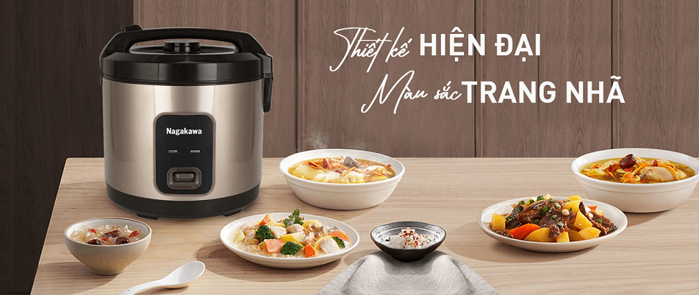 Thiết kế nồi cơm điện Nagakawa NAG0146 theo phong cách hiện đại, màu sắc trang nhã phù hợp với các không gian bếp và phong cách nội thất khác nhau. NAG0146 sẽ là điểm nhấn hài hòa để đem đến những phút giây thư giãn trong căn bếp của bạn.