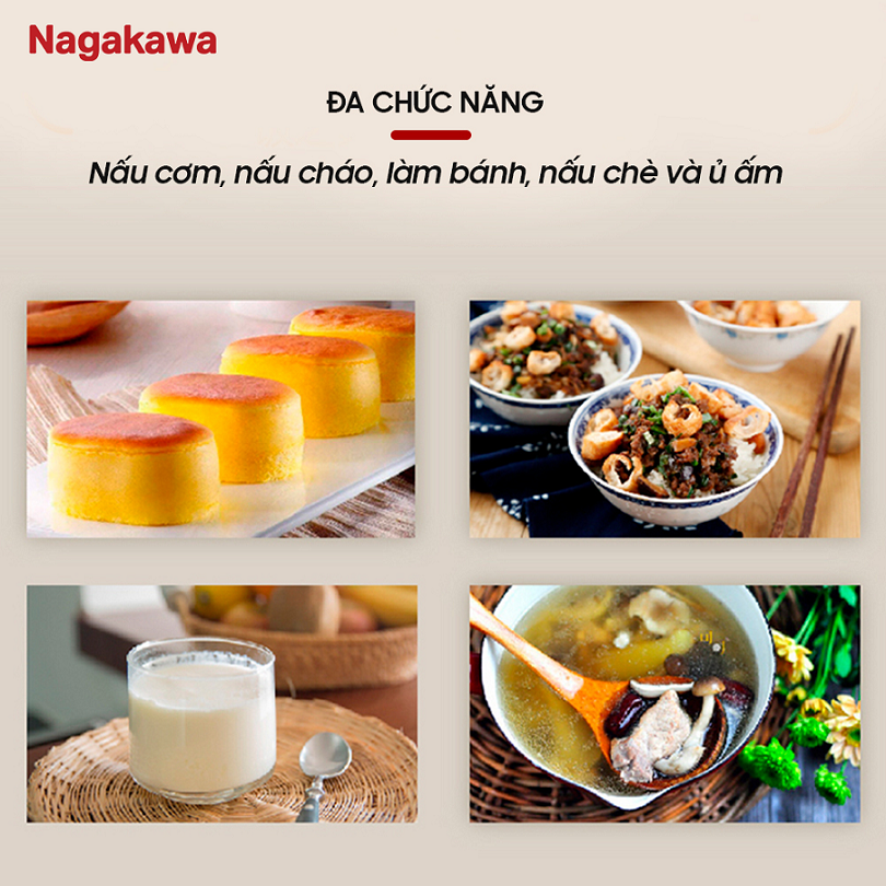 | Công năng | Đa chức năng: nấu cơm, nấu cháo, giữ ấm |