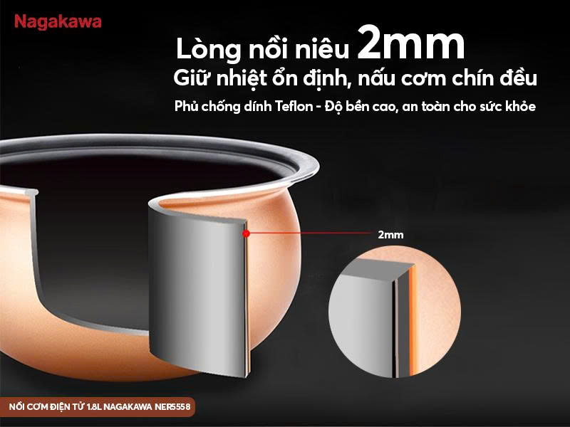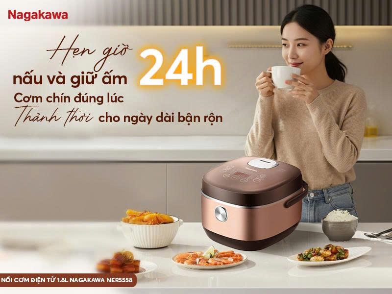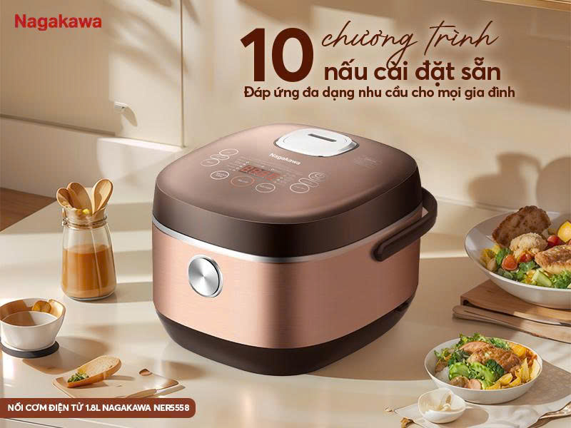 Nồi cơm điện tử 1.8L Nagakawa NER5558 - Giữ trọn hương vị, ấm áp từng bữa cơm